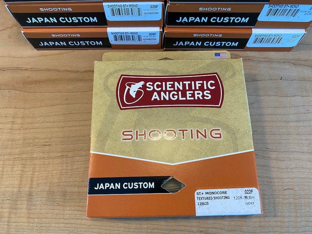日本特注シューティングラインがST+コーティングでリニューアル 日本向け特注のフローティングシューティングライン0.022”、0.025”がコーティングを従来のASTから0.028”で採用された耐久性の高いやや硬めのST+に変更してリニューアル。コーティングのハリを加える事でラインのしなやかさと絡み難さという相反する要素をバランス良く両立させました。また細いシューティングラインの課題であった耐久性もST+によりアップしています。0.028”はブレイデッドコアのみ、0.019"はモノコアのみ、0.022”、0.025”はそれぞれの太さにブレイデッドコアとモノコアが有ります。 ST+、全長100’ ・0.022”ブレイデッドコア…ラインカラーはブルージェイ ・0.025”ブレイデッドコア…ラインカラーはサンライズ ・0.028”ブレイデッドコア…ラインカラーはアクアブルー(先端ループ付)